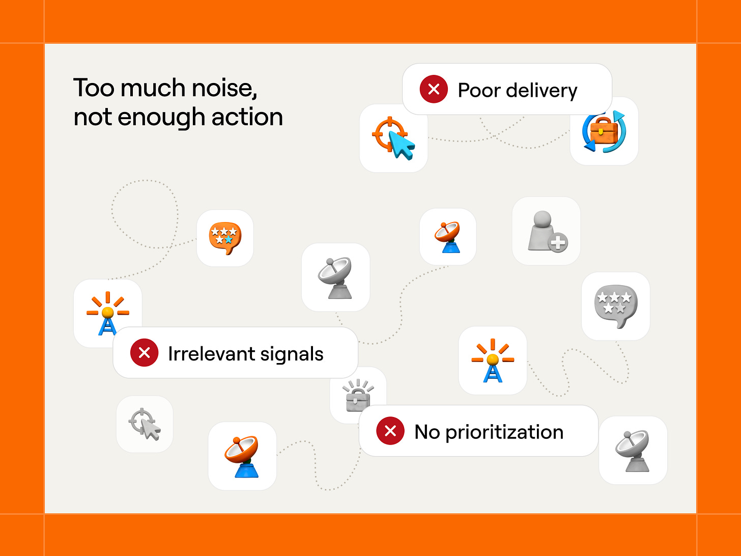 Everyone knows signals are important, but understanding how signals are interacting with one another is one of the biggest challenges in GTME right now. Revenue teams monitor everything from job changes to page visits to product usage to LinkedIn ad clicks. The result can be chaotic, especially when teams are basing automated actions on faulty signals. When every account is triggering something, nothing feels important.