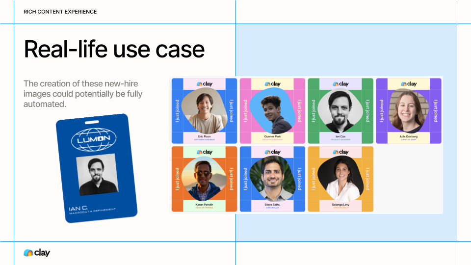 Clay product designer Ian fully automated the manual process of creating employee welcome materials. His system:
