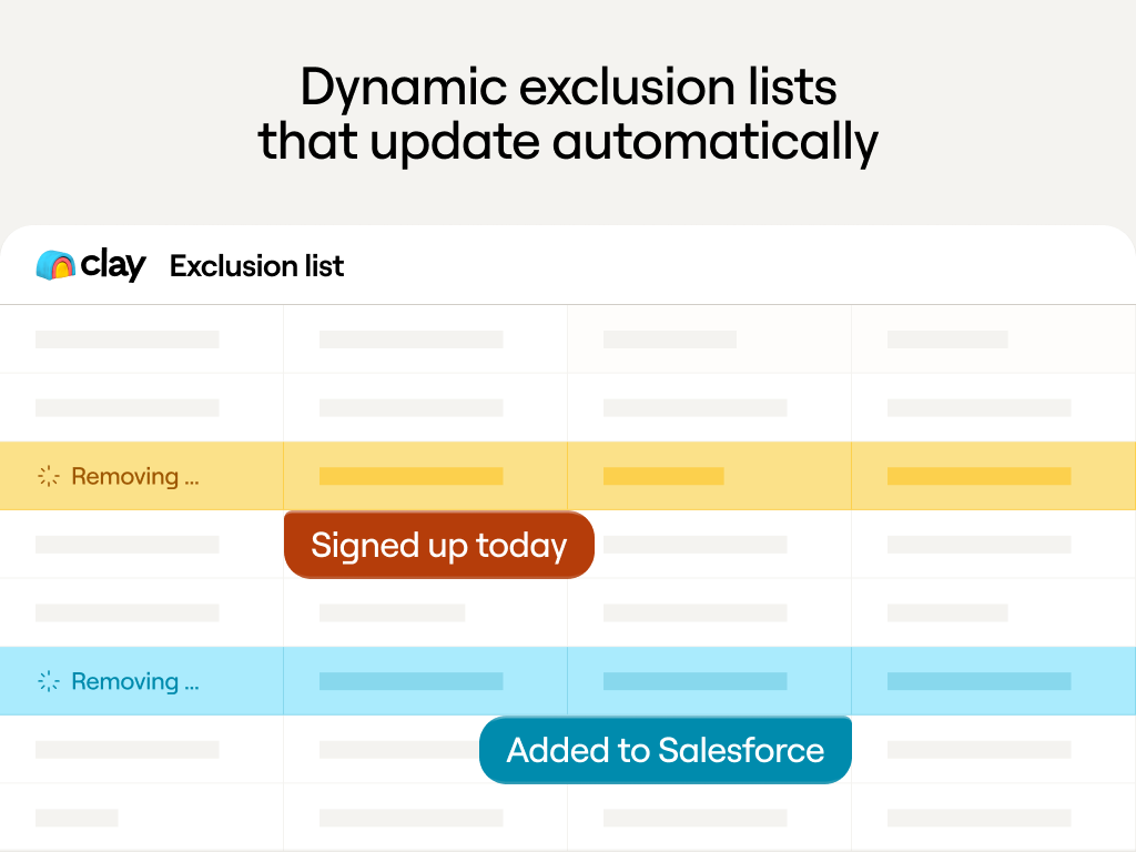 Start with exclusion lists. Build a Clay table that pulls current customers, open opportunities, recent inbound leads, and partners from your CRM. Set it to refresh daily and push to both LinkedIn and Meta. This prevents waste before you build sophisticated targeting.