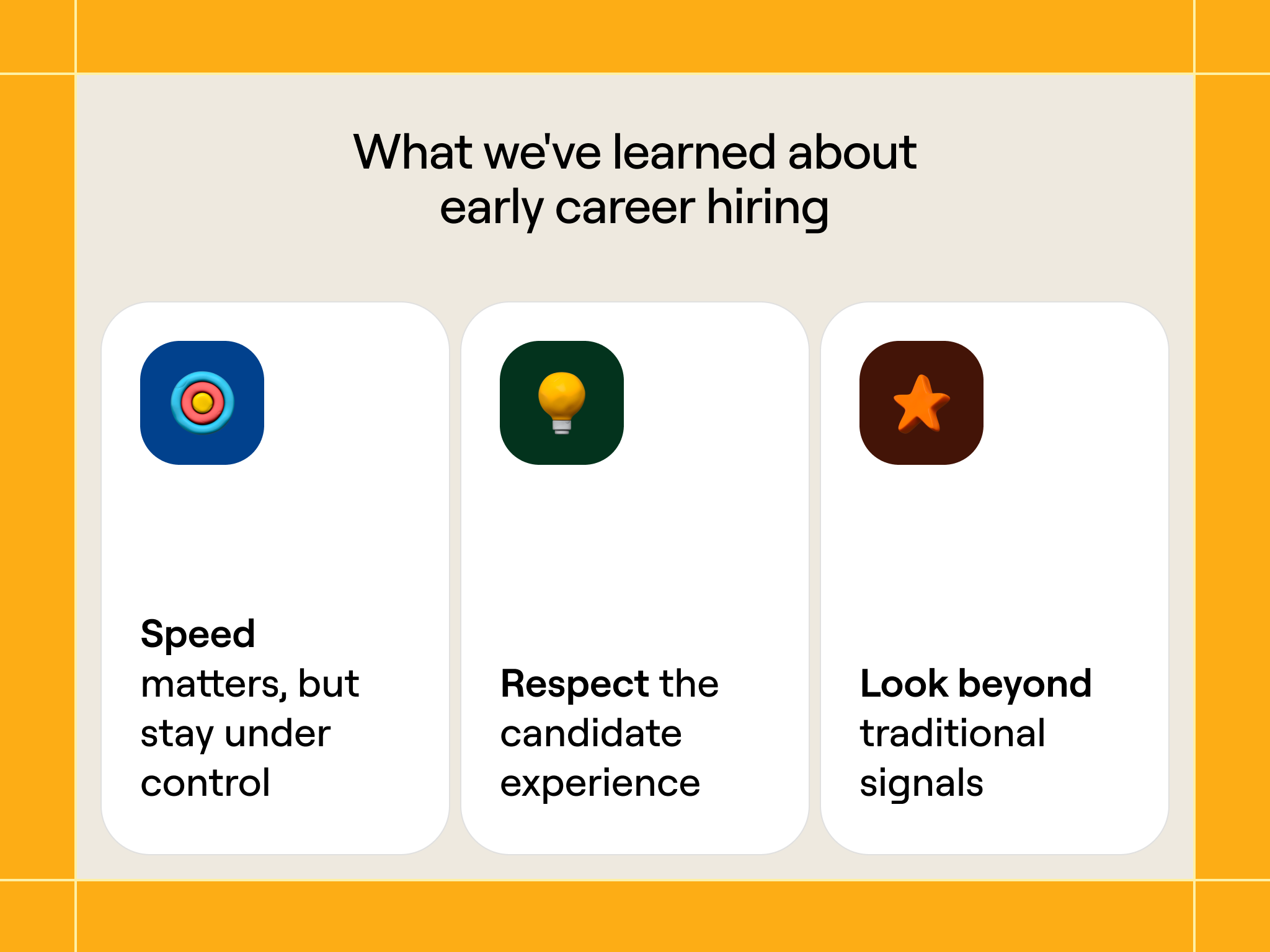 If you’re considering early career hiring, here’s what we’d recommend: