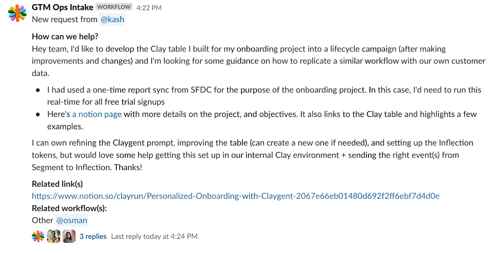 Their work impacts sales enablement, growth marketing, customer success, and more. They both invent new workflows and scale promising tactics from individual experiments. For example, a seller recently built a custom Clay table to track buying signals and draft outreach for top prospects. The GTME team templated the build and rolled it out org-wide within days.